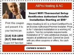 ECOBEE SERVICESAllPro Heating & AC is Grand Prairie Tx 75050 Premier Ecobee professional Thermostat Installer. If you have purchased an Ecobee3 thermostat for your home, AllPro Heating & AC is available to perform the installation. Let the Ecobee professional installer that has been trained by Ecobee perform your installation. We can have your Ecobee thermostat installed in a jiffy, and make sure that your system is working properly after the installation. AllPro Heating & AC is Ecobee thermostat experienced and has performed many Ecobee Thermostat installations. Although they may look the same, many air conditioning and heating systems are not the same, and are not as standard as they look. Many times what looks like a “standard”, “run of the mill” Ecobee thermostat installation, can lead to immediate failure of all or part of your air conditioning and heating system.